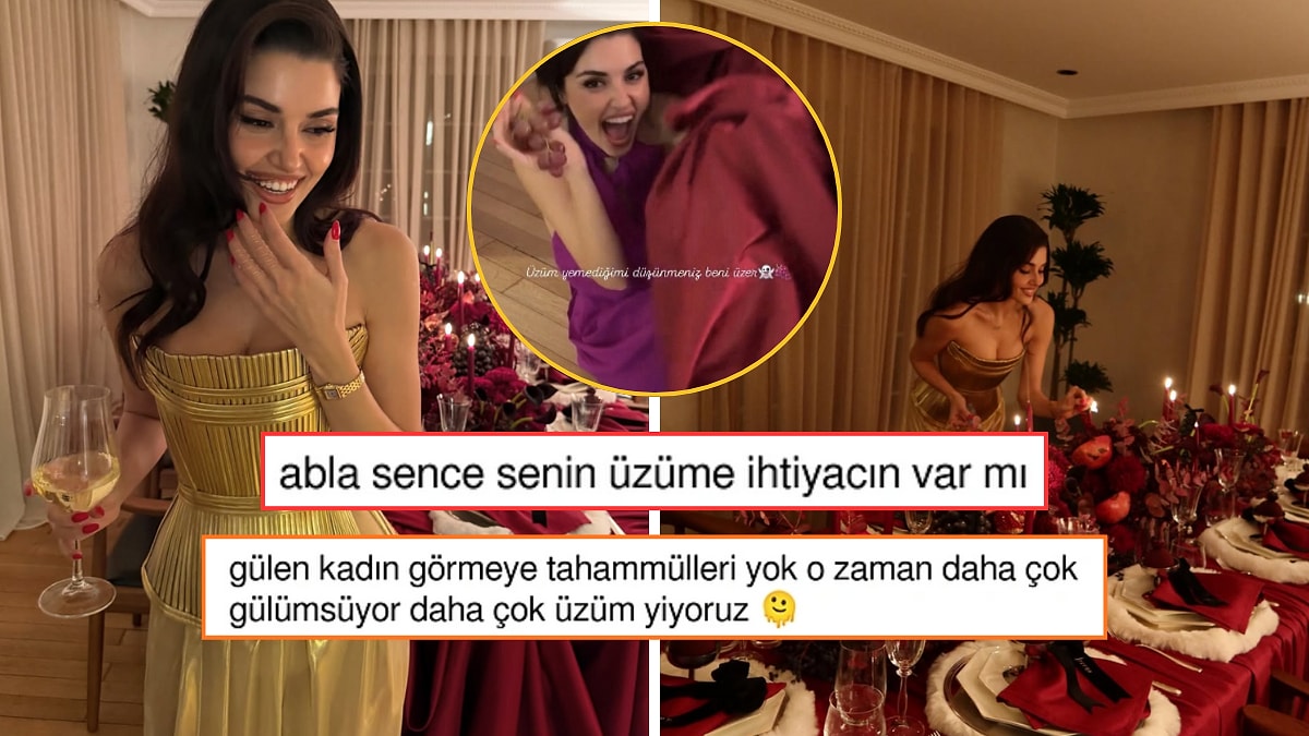 Attığı her adımla gündem olmayı başaran Hande Erçel, 2026’ya da olaylı bir giriş yaptı. Güzel oyuncu yeni yılı kardeşi Gamze Erçel ve arkadaşlarıyla karşılarken, üzüm yeme ritüelini bu yıl da devam ettirdi. Masanın altına geçip 12 üzüm yediği anları sosyal medyada abonelerine özel paylaştı. Yorumlar da gecikmedi. İşte detaylar 👇