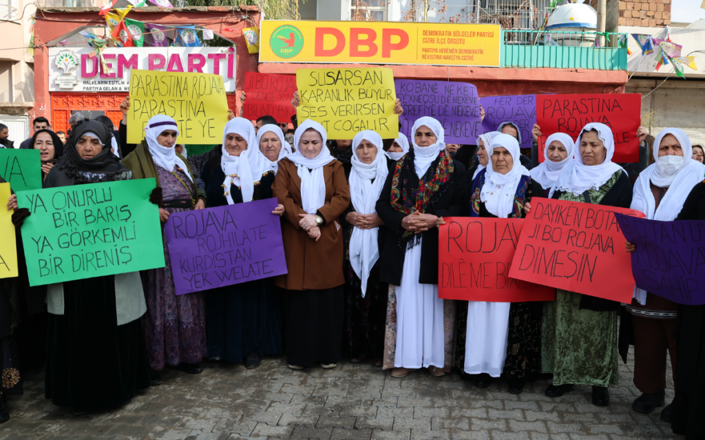 Botan Barış Anneleri Meclisi, Halep’e dönük saldırılara karşı Ankara’da yapılacak yürüyüş için uğurlandı. DEM Parti Cizre İlçe Örgütü önünde bir araya gelen siyasi parti ve demokratik kitle örgütü temsilcilerinin içinde olduğu kalabalık grup, Barış Annelerini Ankara’ya yolcu etti.