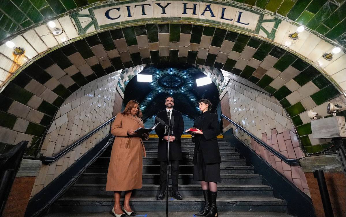 Belediye Binasının altındaki uzun süredir kapalı olan bir metro istasyonunda düzenlenen yemin töreninde Mamdani, eşi Rama Duwaji’nin elinde tuttuğu el yazması Kuran’a el basarak yemin eti.
