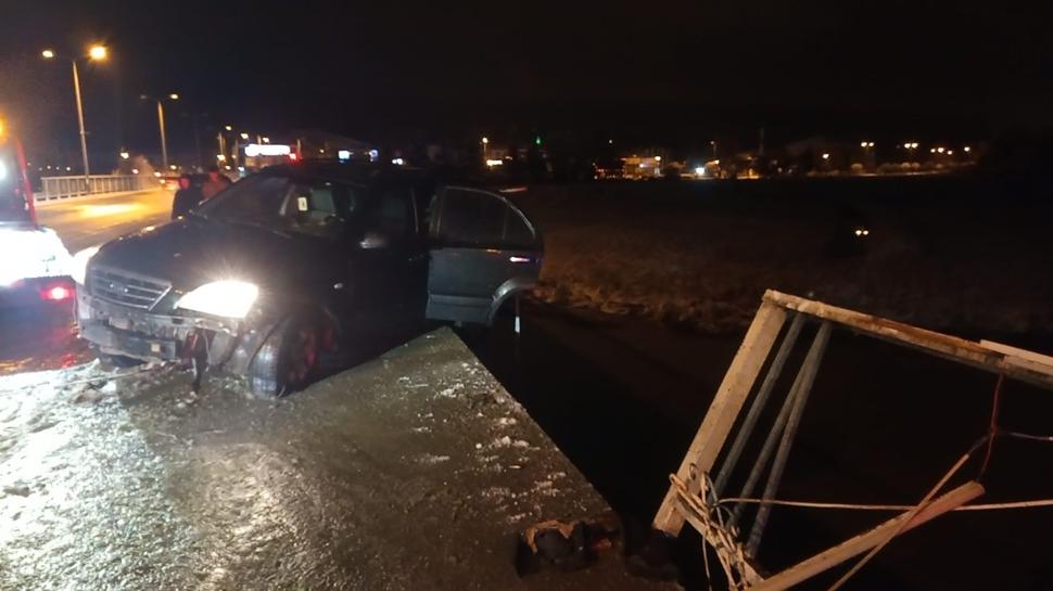 Kaza yapan araç köprüde asılı kaldı… Nehre düşmekten kıl payı kurtuldu